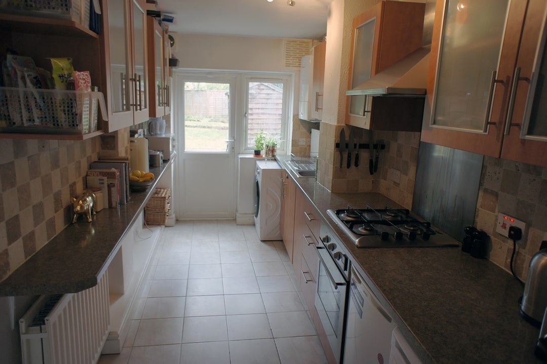 Sole use of an unusually large garden with vegetable patches at the rear and a large green space. The garden benefits from a small shed, brick BBQ and a picnic bench on the patio. There are also two beautiful cherry blossom trees which flower in Spring.
